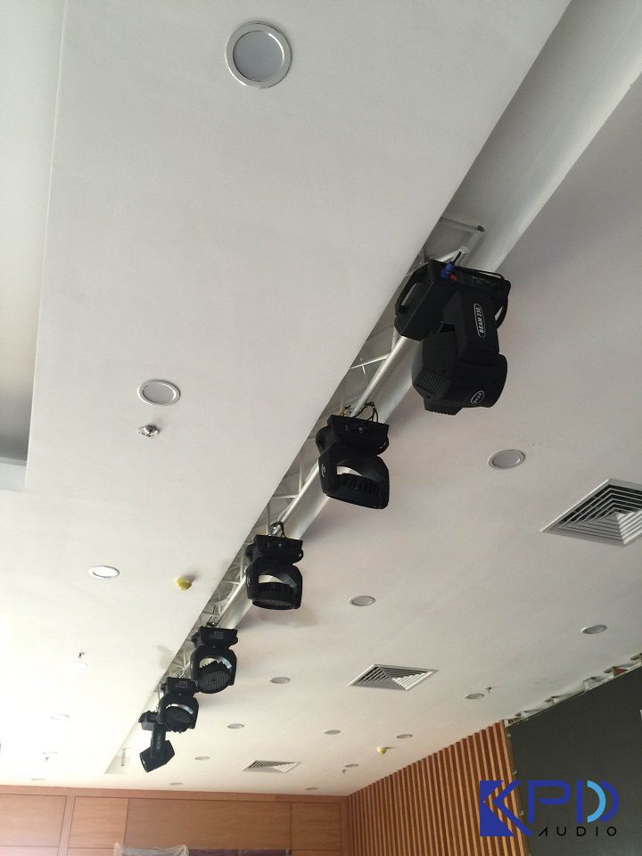 Cấu hình 1: Cấu hình thiết bị âm thanh ánh sáng cho hội trường tòa nhà Hudland diện tích 340m² do Khang Phú Đạt thi công lắp đặt